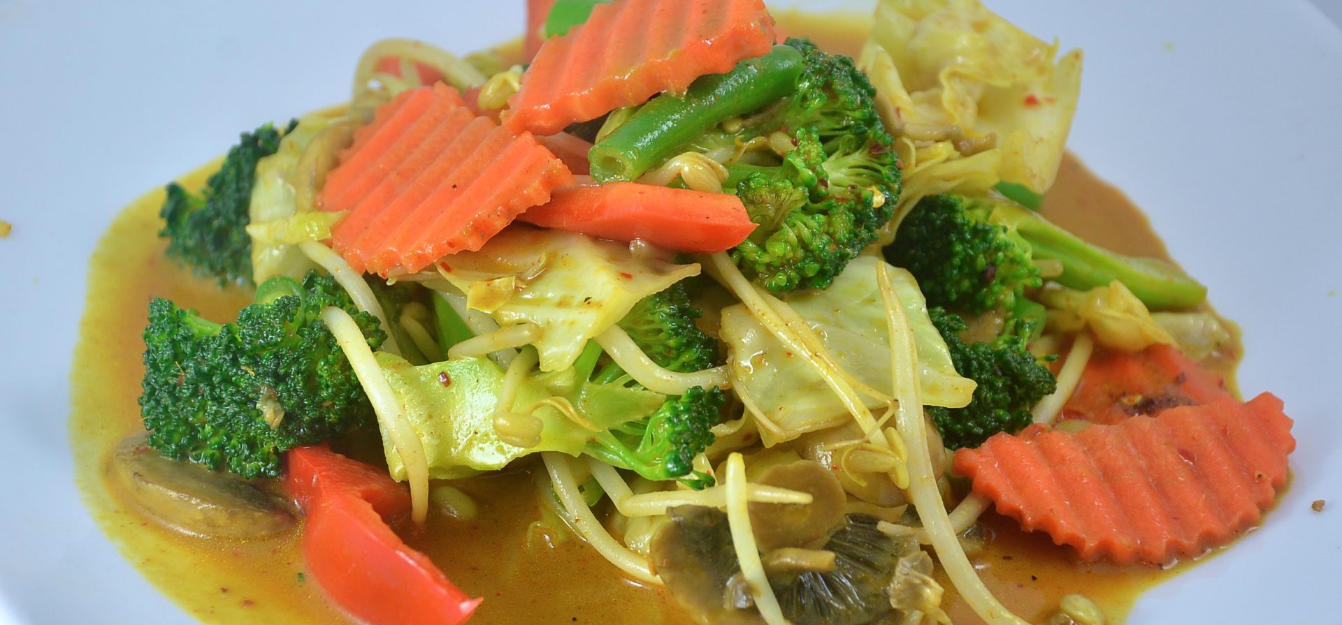 Broccoli, carrot, cabbage, bell pepper, tomatoes & bean sprout sautéd in coconut curry. Tofu or Garden $22